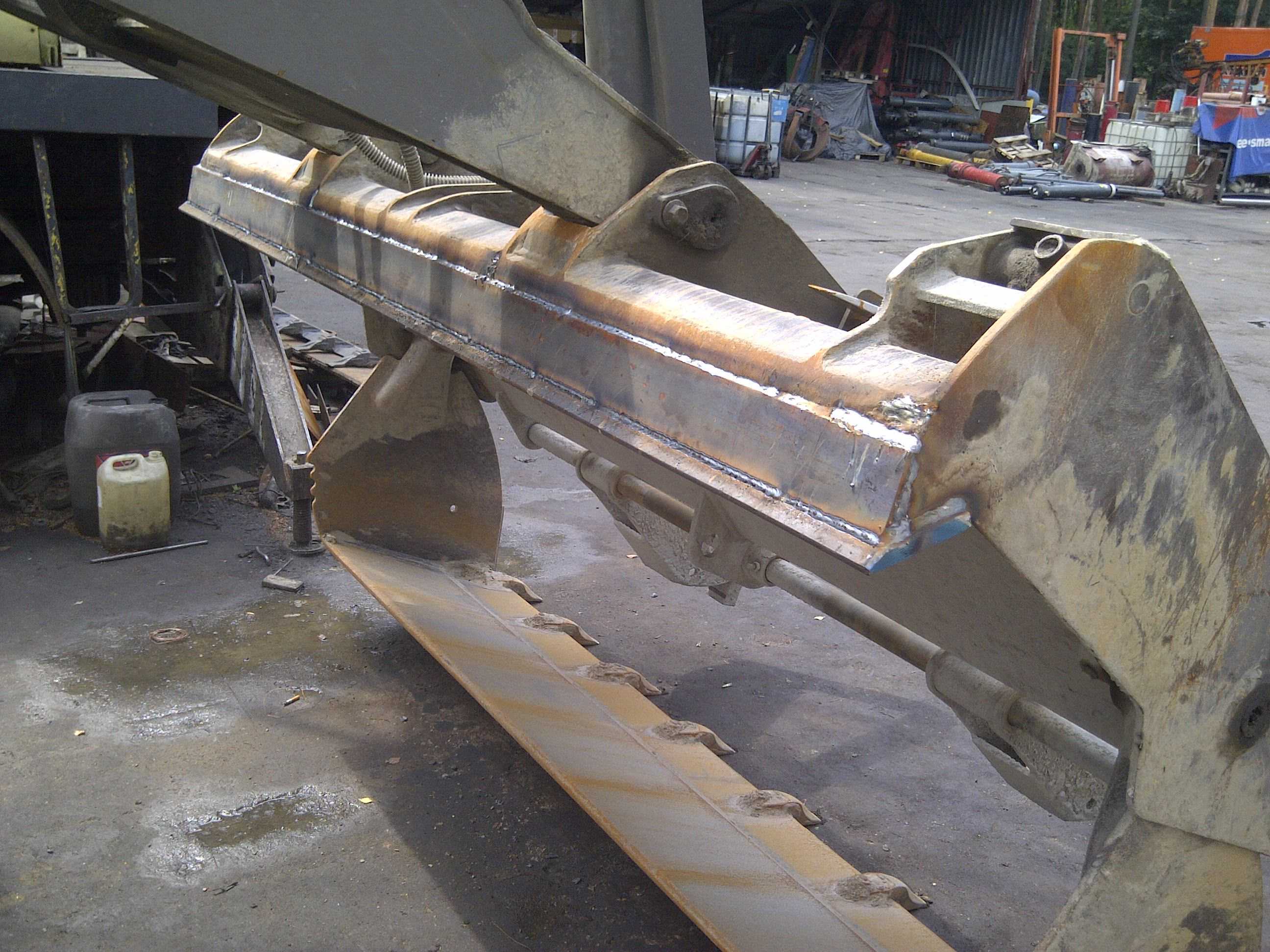 - Łyżki do koparek i ładowarek: Wykonujemy osprzęt budowlany na specjalne zamóweinie, naprawiamy pęknięcia, wymieniamy zużyte lemiesze i zęby, wzmacniamy konstrukcję.